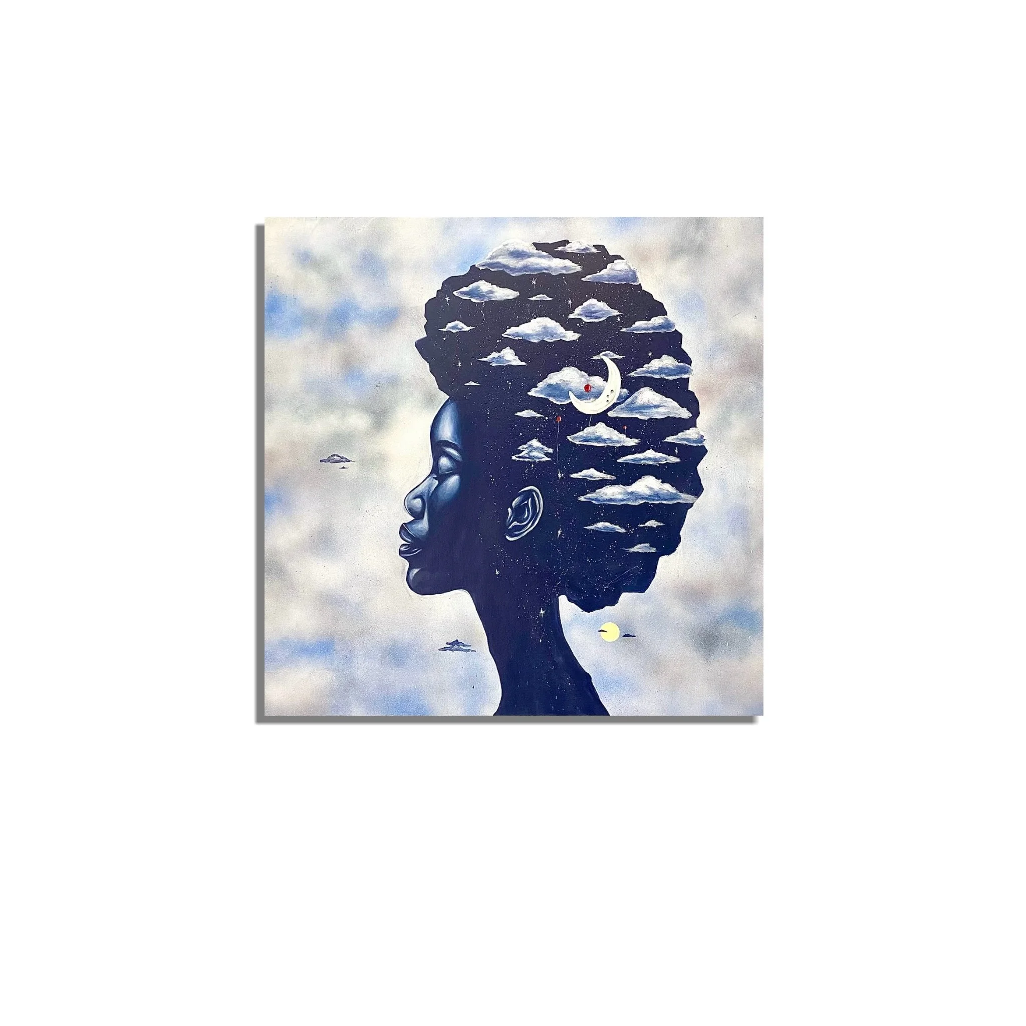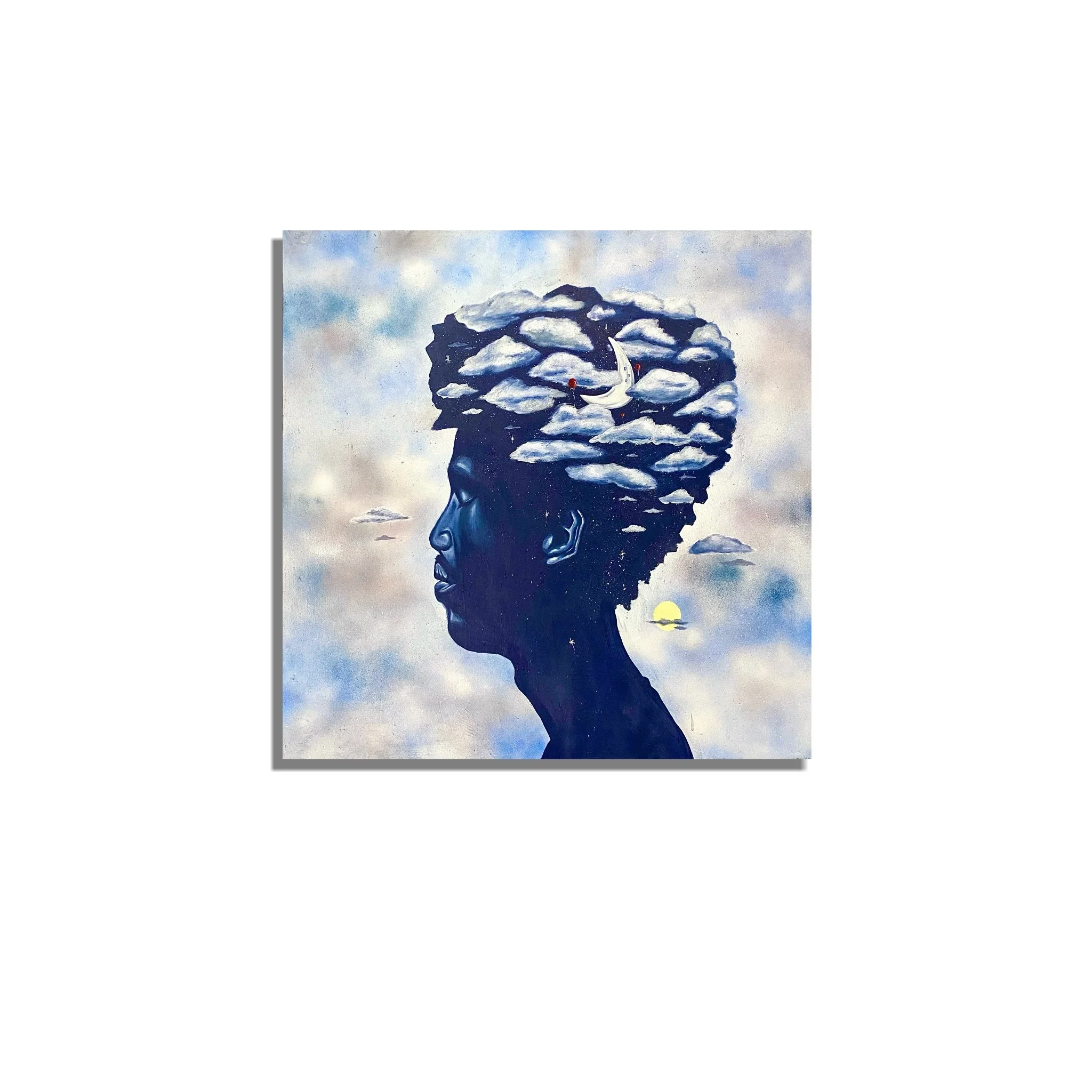 This series explores imagination and hope, blending surrealism with sky symbolism to remind viewers that possibilities are limitless. Each painting reflects resilience and the pursuit of happiness, even in adversity. The clouds, sun, and dreamlike elements symbolize fluid thought and human potential. By merging the human form with the ever-changing sky, I hope to inspire others to see beyond their circumstances and reconnect with their vision and purpose.